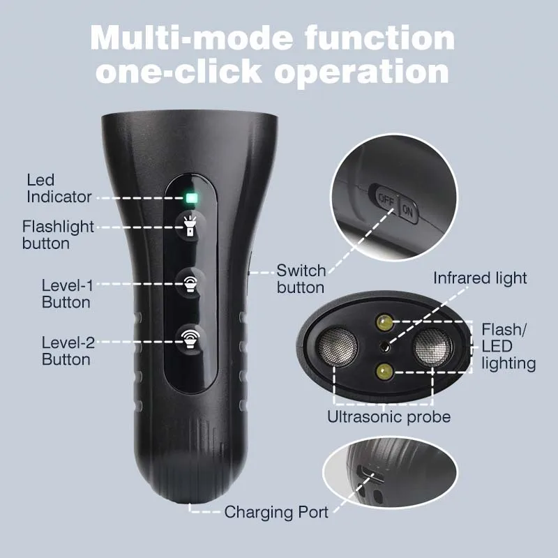 2025 NEW Dog Repeller Rechargeable Handheld Ultrasonic Dog Repeller LED Light Bark Control Device Anti Bark Dogs Accessories