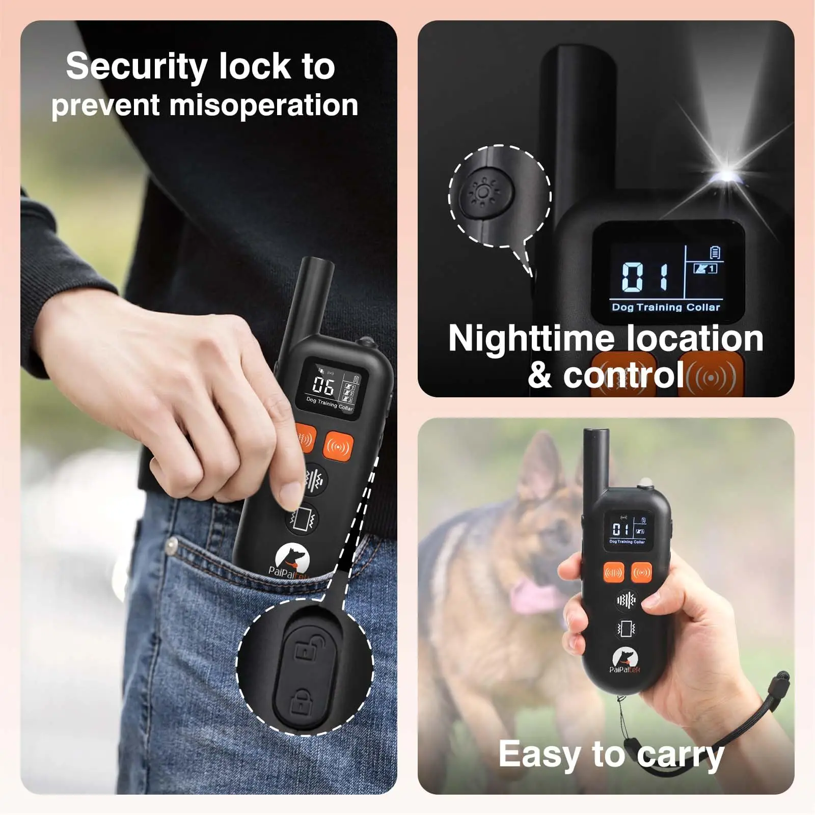 【User-Friendly Remote】Security Lock prevents pet stress from accidental activation. Built-in flashlight enables quick nighttime dog location & control. Quick-release wrist strap ensures secure handling during walks or backyard training